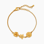 The Personalized Birth Flower Charm Bracelet features exquisite 18K gold plated flower charms representing your choice of birth months, with sparkling crystal centers on a delicate box chain. This waterproof, tarnish-resistant piece allows you to commemorate up to eight special birthdays or meaningful dates, creating a truly personal keepsake that maintains its luxurious shine through everyday wear. Style this meaningful bracelet alone for a subtle statement or stack with gold bangles/chains for a more dramatic effect.