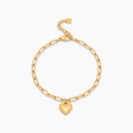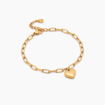 A modern classic with a sentimental twist. The Heart Charm Paperclip Bracelet features a sleek paperclip chain finished with a polished heart charm at the center. It’s minimal, easy to wear, and designed to add meaning to your everyday stack. The adjustable length makes it perfect for layering or wearing solo. Crafted from durable, water-resistant 18K gold plating, it’s made to last through daily wear.